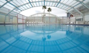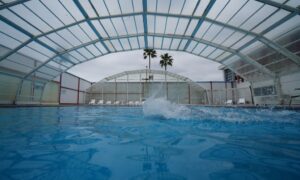 مجموعه آبی هتل ساحلی شهر شامل سونا خشک،سونا بخار ،جکوزی سرد و گرم و همچنین استخر آبگرم با متراژی حدود ۳۰۰ متر مربع و دارای فضای آبی ویژه کودکان و با سقف متحرک به صورت سرپوشیده و روباز درچهار فصل سال قابل استفاده می باشد